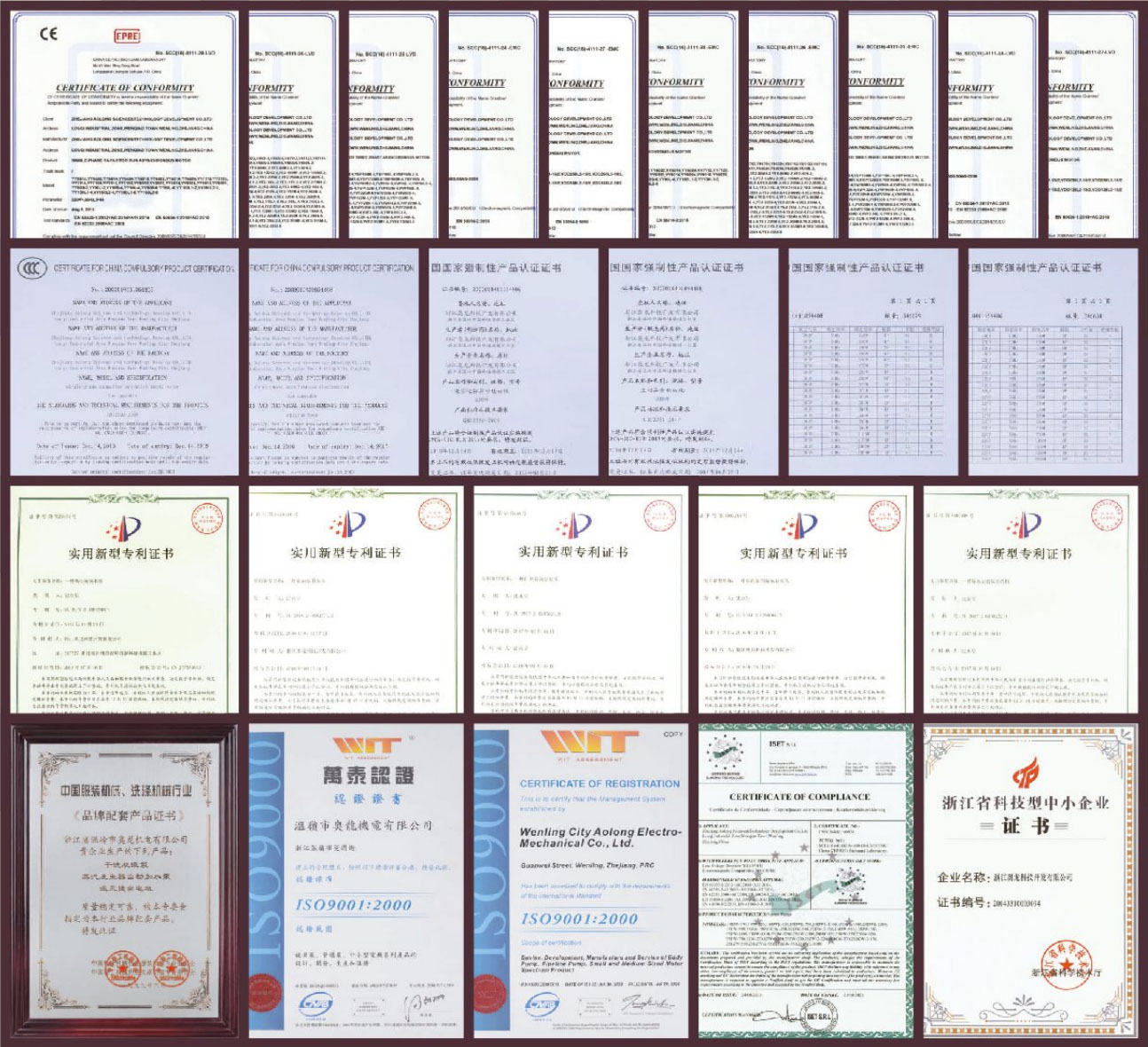 The company has obtained a number of patents, centrifugal vortex pump won the national invention patent, in 2004 was named Zhejiang Province small and medium-sized science and technology enterprises, has passed 3C and CE certification, with a perfect management system and advanced production and testing equipment, strictly ensure product quality. In the domestic motor and pump industry, Aolong has been designated by the China Light Industry Machinery Association as clothing machinery, washing machinery industry brand supporting products, has formed a professional, serialized, standardized supporting products in the field of boilers, ironing, washing, dry cleaning equipment, has reached the leading level of domestic peers.